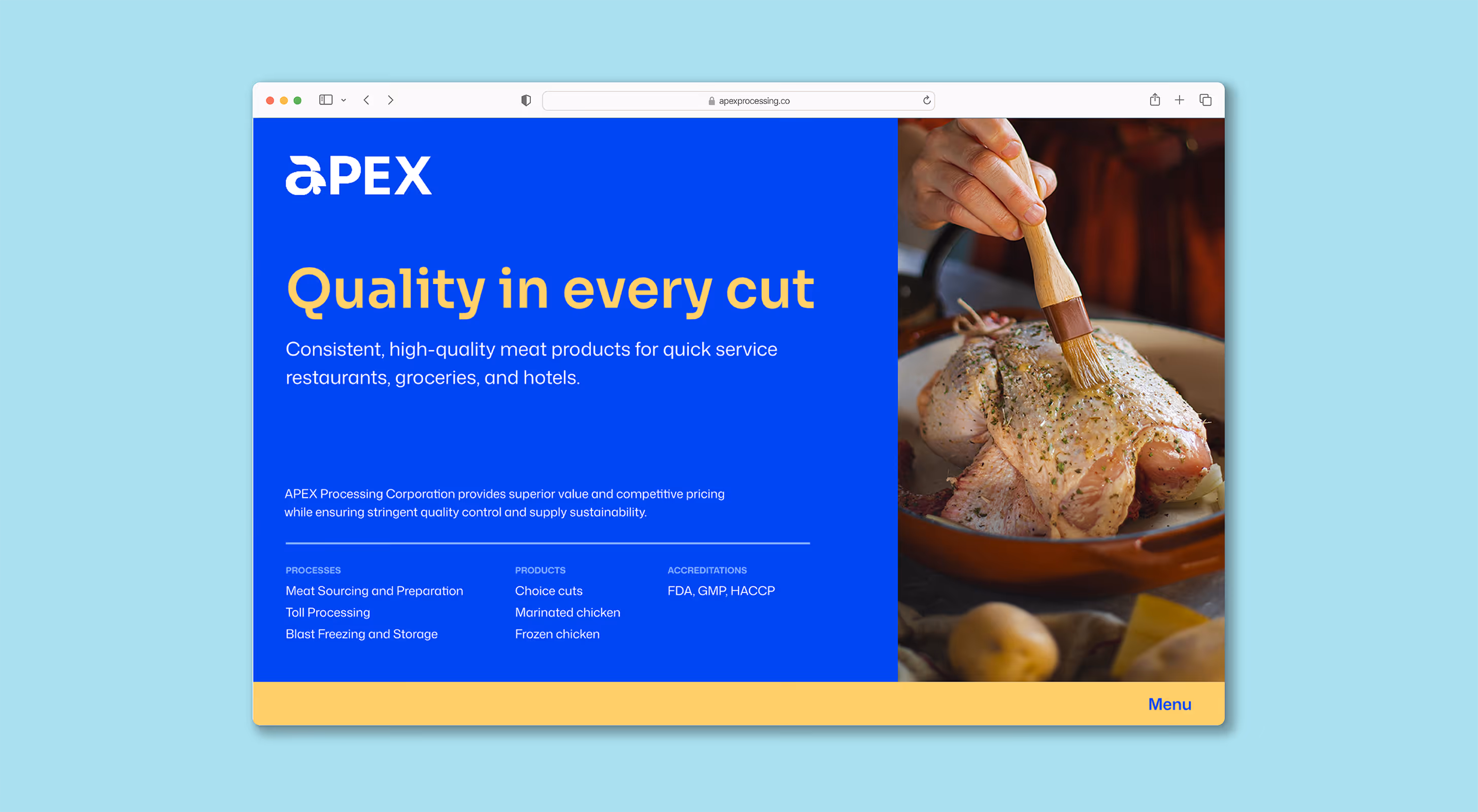 We craft an impactful, memorable brand identity for APEX Processing Corp., solidifying their status as the trusted partner for high-quality poultry processing needs.