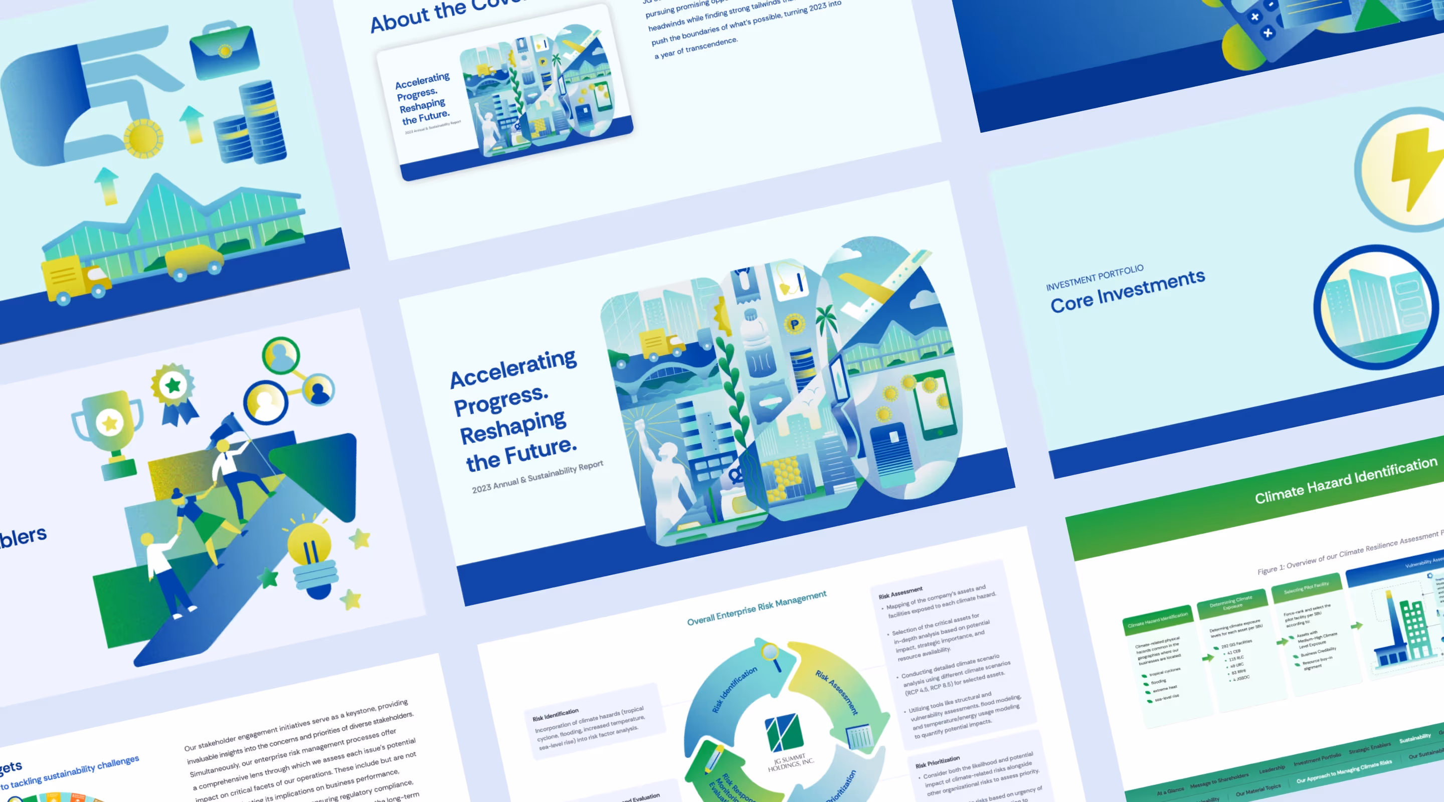 In 2023, JG Summit Holdings, Inc. weathered economic headwinds while pushing boundaries. To illustrate this, we emulate the value of constant evolution and transcendence in our design for their annual report.